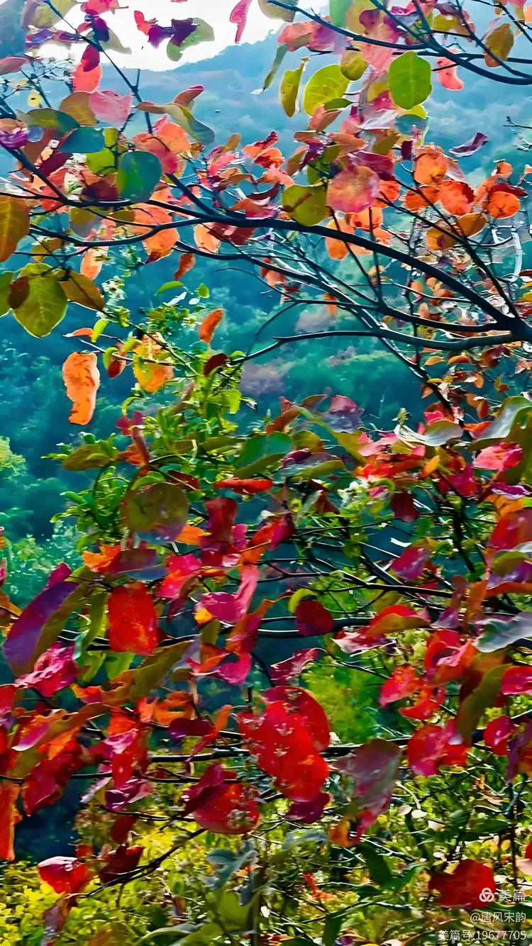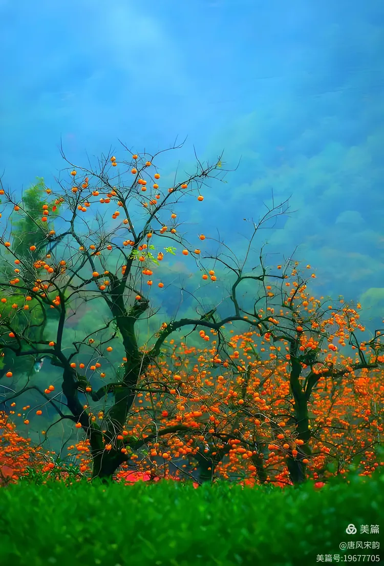正踏秋天气,柿枫丹,雁阵翥长空。喜霜风云扫,暖阳雾散,虫噪无踪。多日郁结尽释,退了雨天容。但见艳阳好,情愫谁同。